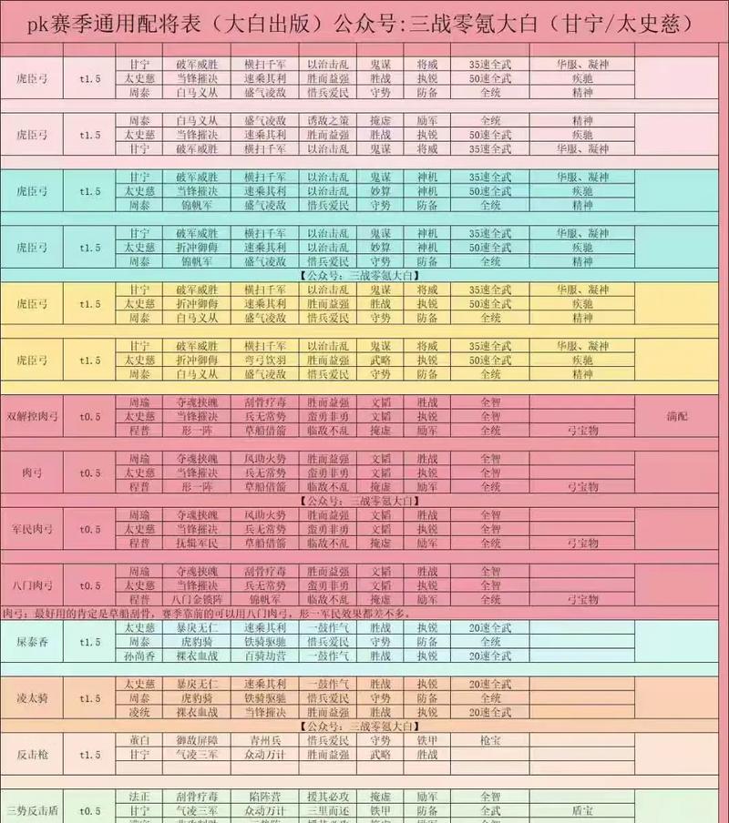 在游戏中,不同的武将搭配与战术运用会产生不同的效果。我们将介绍一些合理搭配和战术运用的方法,帮助玩家充分发挥新武将的潜力,达到最佳战斗效果。